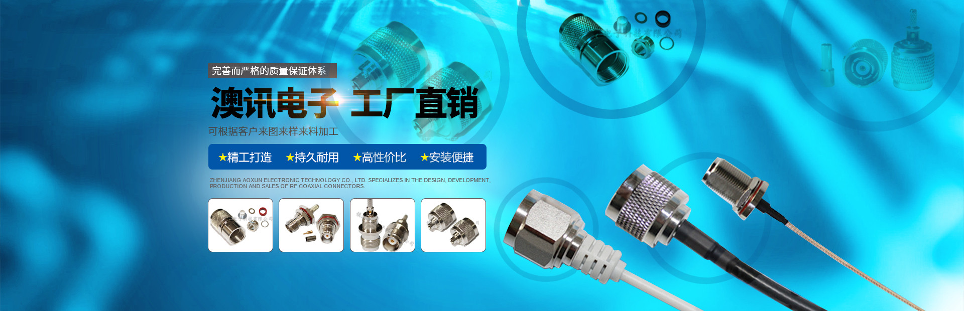 鎮江市澳訊電子科技有限公司,占地面積5000平方米,現有員工近百名,各類技術人員占15%。我公司專業從事射頻同軸連接器的設計、研制、開發、生產、銷售。